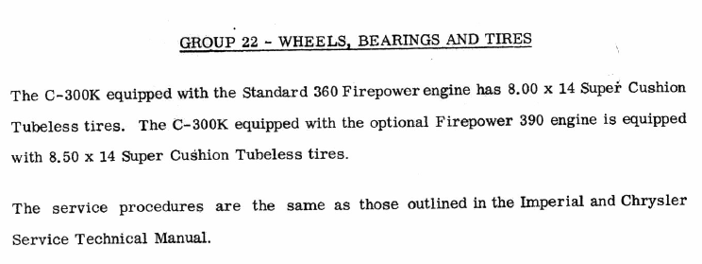 There are separate letter car brochures up through the J. The K just seems to have one page of the Chrysler full-line brochure. The J and H brochures still call out the Blue Streak tires but of course they are 15". The J brochure doesn't say much about them. The K page in the full-line doesn't either but they did go back to 14" ones.