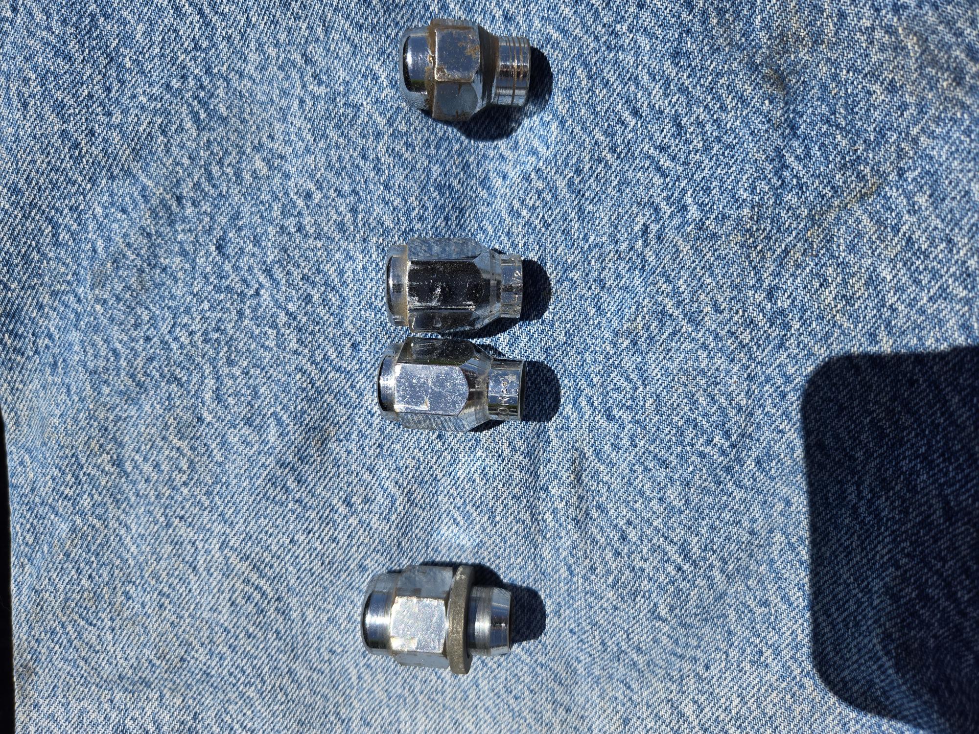 There is problem however in that the stock wheel studs are all about 1inch long. The depth of aftermarket wheel lug holes is much deeper so, one needs to use Extended Thread (ET) lug nuts to get the full 10 turns as required for thread engagement. Fine for the passenger side. For the Driver side left hand thread…this is a problem.