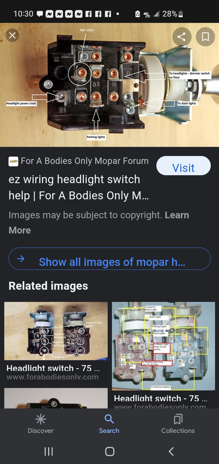 Yes , unfortunately I don't have another one laying around. Hate to go buy another just for experimentation. And what with crappy parts now, no guarantee it will work either, Been having terrible luck with lemon tools I have to return. That might be a new thread,Neal--On Thu, Jun 23, 2022 at 11:31 AM 62-65-mail-list-club-Gary-H <62-65-mail-list-club@xxxxxxxxxxx> wrote:Here's a generic link about testing headlight switches that has some tips.