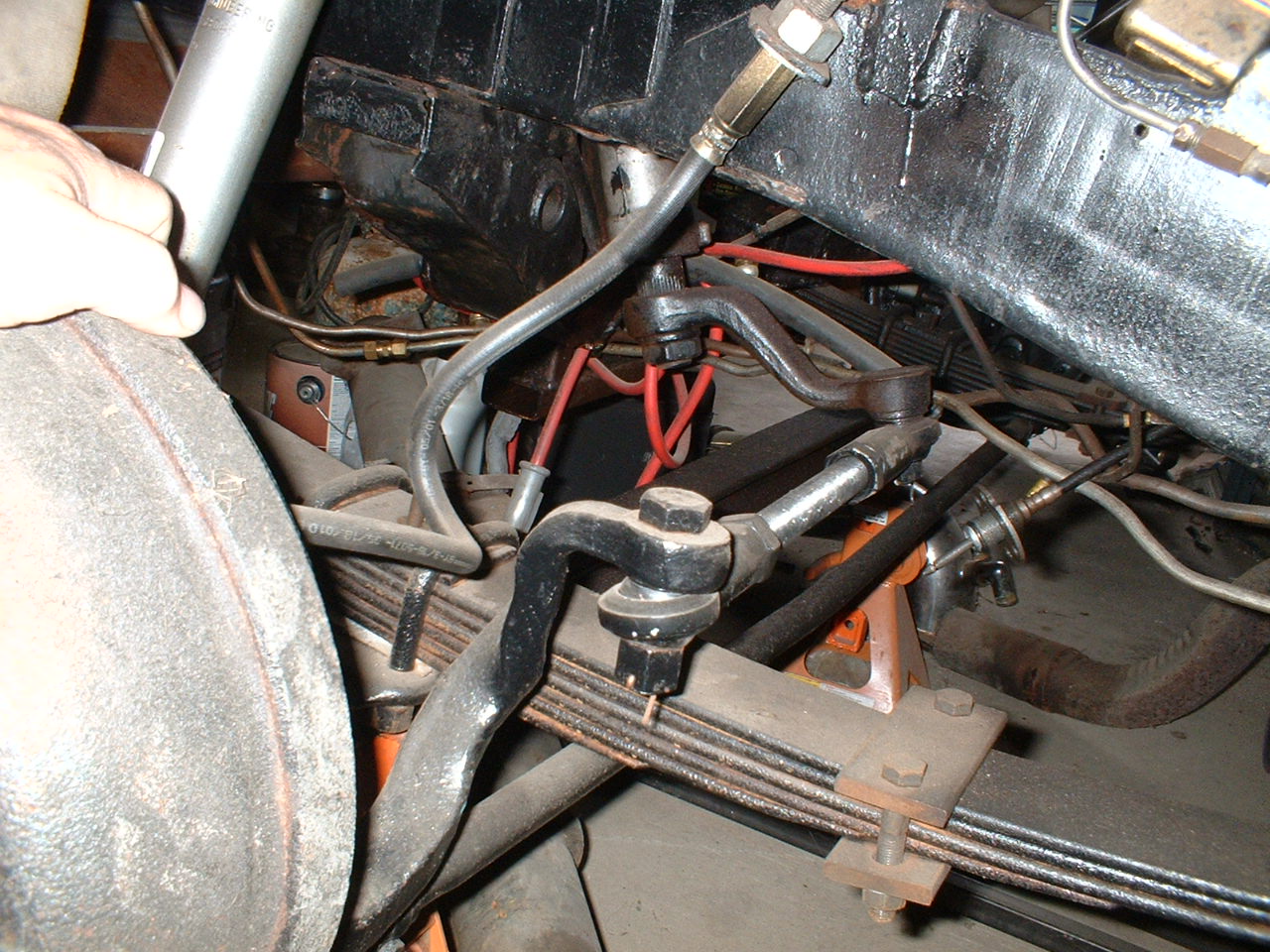 where he could use a tie rod to connect it to the pitman arm. The shocks