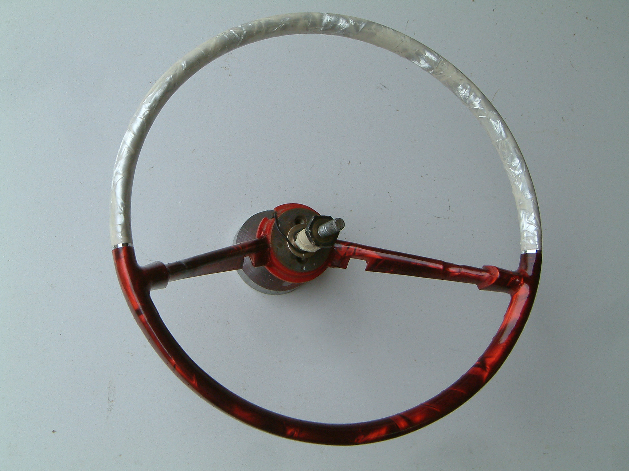 I'm looking for someone who can properly restore a '63 Plymouth Sport Fury steeing wheel. The wheel is pearl white on the top and black on the bottom. The only restorations I've seen do the top in plain white. Does anyone know of a steering wheel restorer who can do the proper pearl white?