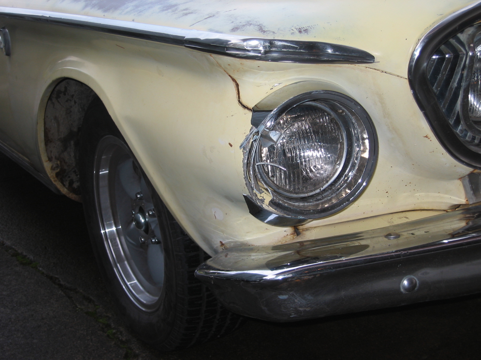 My wagon suffered a mishap during the test drive - after the front end alignment - at the hands of the alignment shop. ;o Anyone have a line on a solid R/F fender? I imagine 2dr or 4dr sedan would be the same. Eyebrow above the headlight, and the headlight bezel are toast.