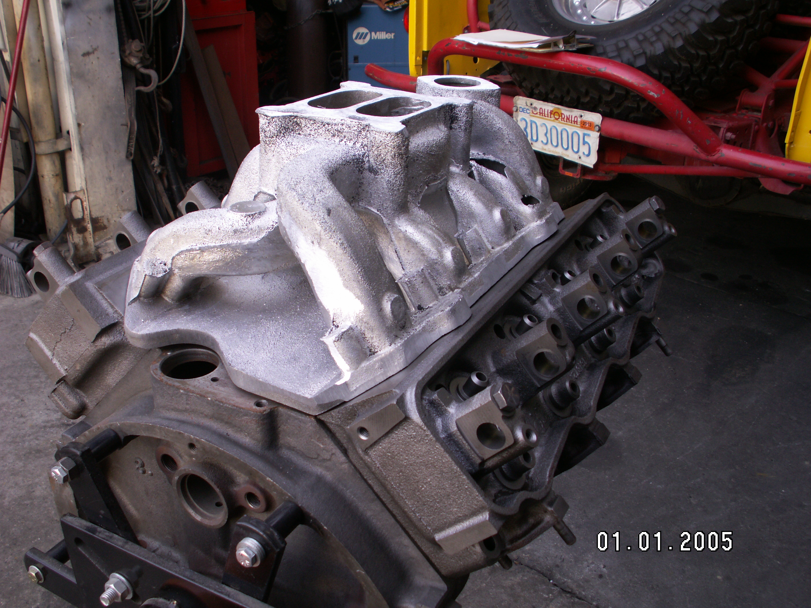 Under the Holley/Edelbrock carb pad is a ribbed plenum floor to enhance