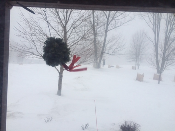 This was my front yard midway through the storm. Pretty steady 40 mph winds with gusts over 50. Lost power for a couple of hours. Thanks goodness for wood heat and a generator. We ended up with 2 feet and are expecting another foot on Friday. Spring in Maine seems a LONG way away.