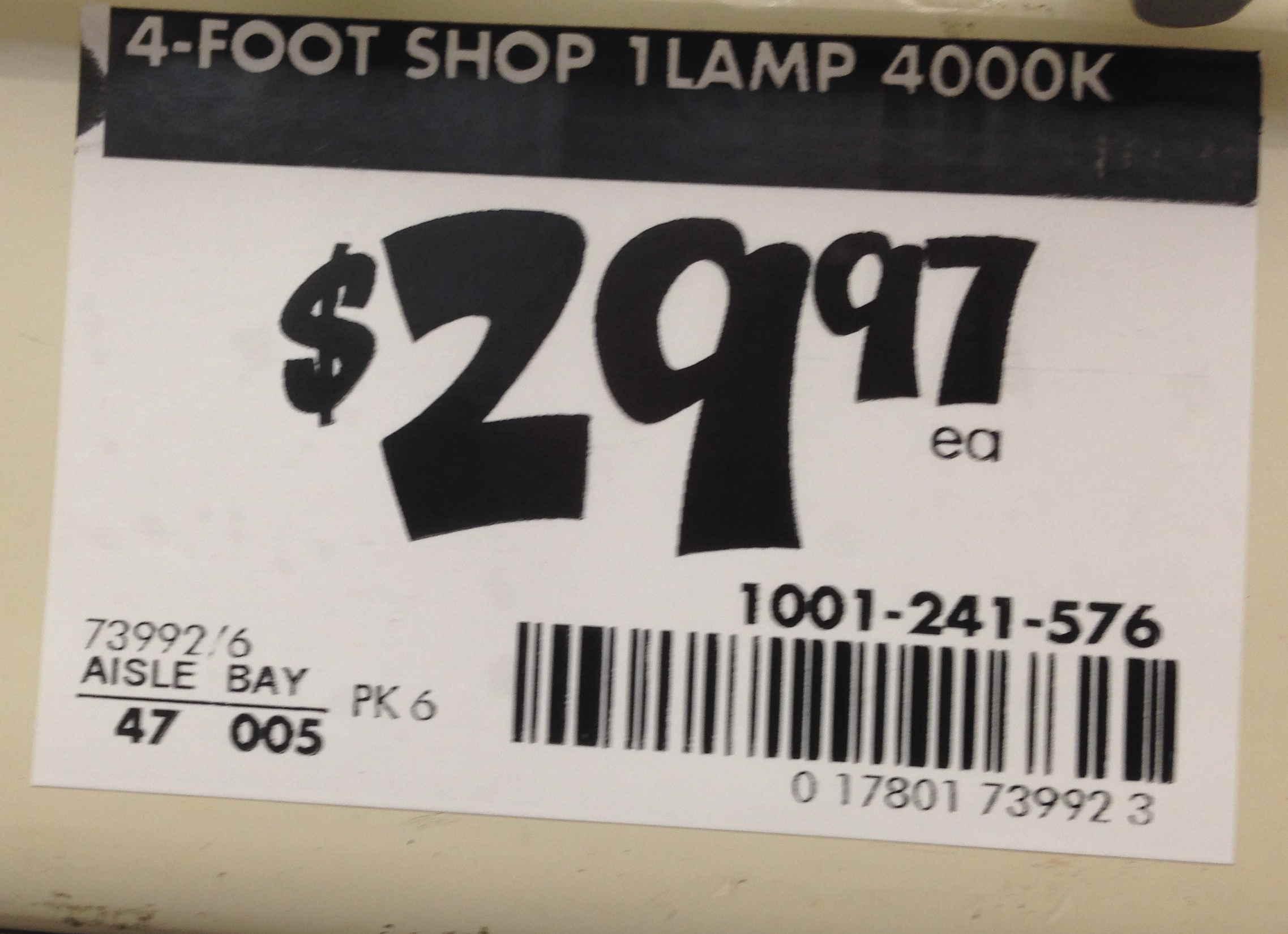 We recently spotted a 4-foot single tube LED in Home Depot. This one isn't a replacement bulb for fluorescent tube fixtures. Nor does it even have a metal fixture at all.