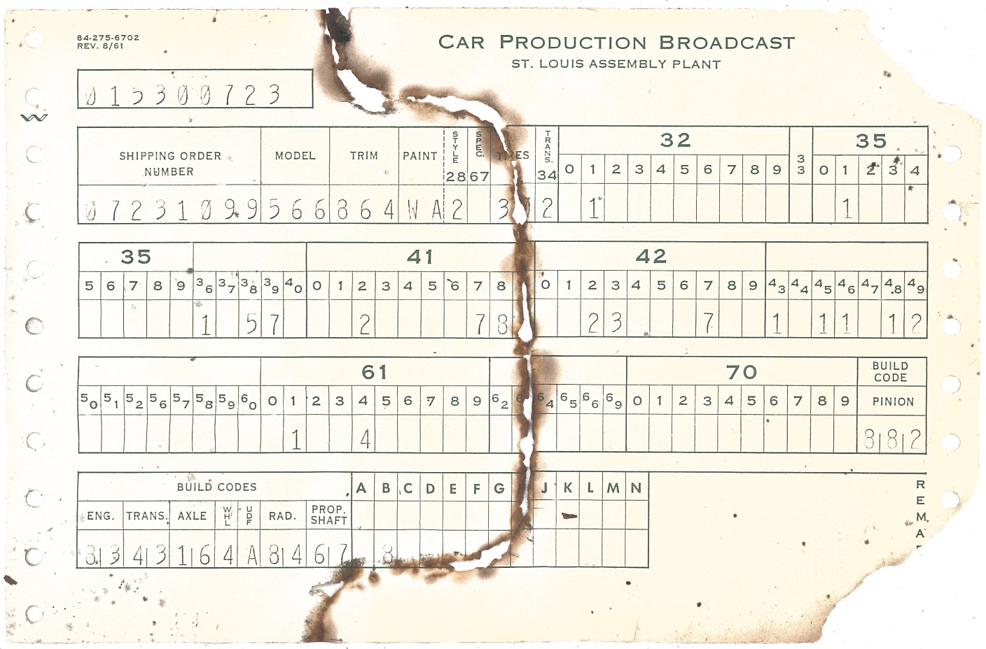 So how does this decipher........... St Louis Assembly plant that much is obvious.......... Found this under the bench seat springs – you can see the rusty spring shape that wore thru the middle. Funny I had the seat out in 2012 when I got the car to remove rotten carpet