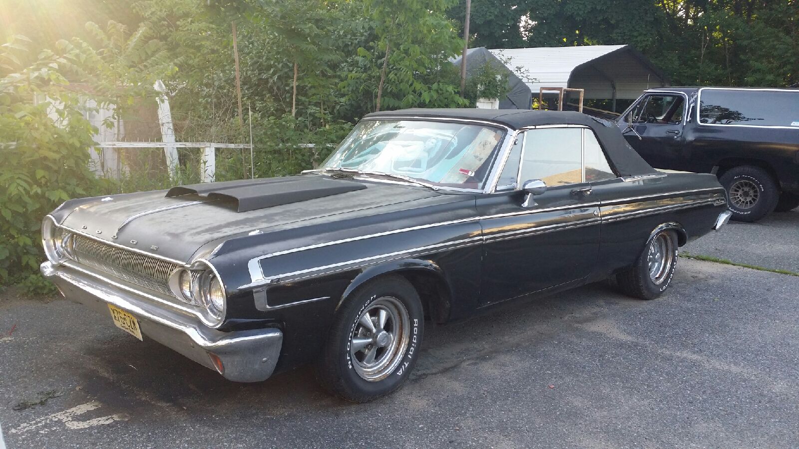 64 Polara, originally a 383/pushbutton, now a 383 4-speed(B&T setup), 8 3/4 rear, rebuilt front end with disc brakes. The top is shot, the floors are sheetmetal with subframe connectors, lots of bondo. Hasn't been tagged for several years.