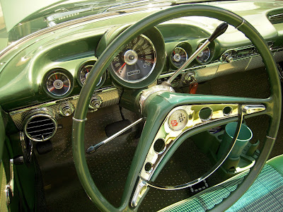 This was done by my dad's best bud he grew up with, he loves doing steering wheel restoring and stainless trim repair...in fact he will probably do my Dodge wheel because he loves to piddle in the garage with stuff like that and he has done it so many times he has it really down big time. He fixed the cracks on the gold one in my coupe (originally it was blue) and our other buddy painted the car and wheel: